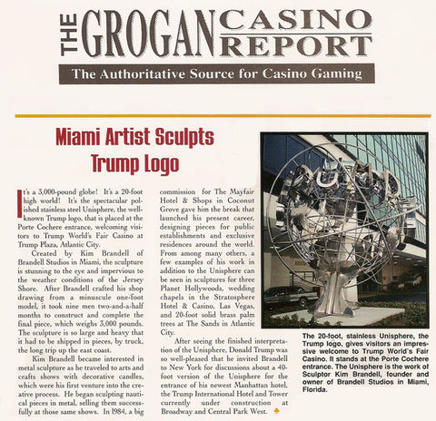 Kim Brandell started his sculpture career 50 years ago. He began creating copper sculptures in his garage and exhibited his creations at outdoor arts and crafts shows. His first commercial project was created for the Mayfair Hotel and Shops in Coconut Grove, Fl. Kim created 18 copper elevator doors, 50 copper birds and 150 copper wall sconces. Most of his career has been centered around creating projects for hotels, casinos, restaurants, and high-end private residences. During this time Kim guided a group of highly skilled craftsmen to forge both exterior and interior masterpieces.
